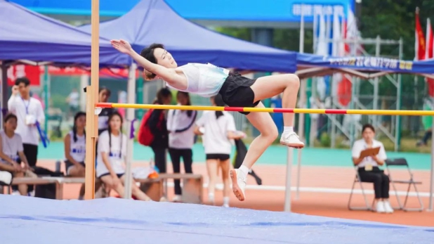 女子乙组跳高比赛中